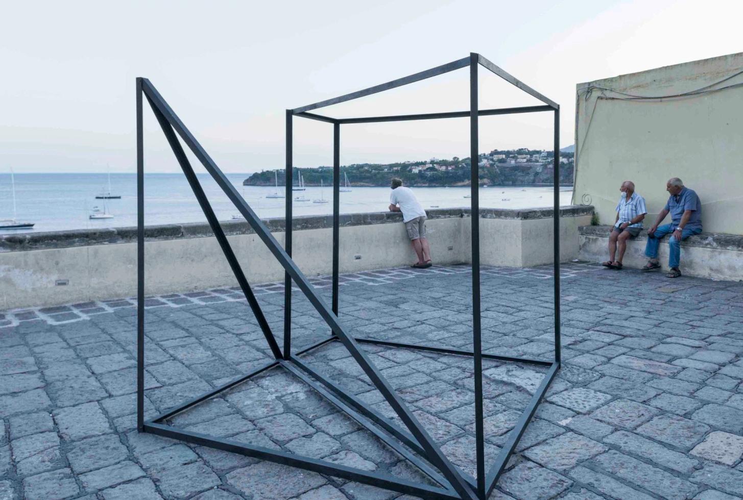Il percorso si snoda sui 4 chilometri quadrati dell’isola, dal porto di Marina Grande sino all’antico borgo di Terra Murata, dominato da Palazzo d’Avalos (1563) già carcere fino al 1968. E si sviluppa su oltre venti siti diversi, tra architetture pubbliche e private, chiese, palazzi storici e aree popolari. Cinquanta opere per cinquanta artisti circa, tra gli storicizzati e le nuove generazioni, in stretto dialogo con gli spazi individuati. Si passeggia tra le opere di Fortunato Depero, Mimmo Paladino, Luigi Ontani, Giuseppe Penone e Andy Wharhol. Il carcere antico ospita opere legate all’isolamento mentre intorno all’Abbazia di San Michele sono presenti quelle di carattere spirituale e mistico. Le grandi installazioni dominano le terrazze con vista sul mediterraneo. Oltre a godere di una grande varietà di opere site-specific, firmate da autori giovani, che abbracciano per lo più i linguaggi performativi e sperimentali, facendo ricorso al sonoro, alla dimensione digitale e alla partecipazione collettiva. Come la performance di Elisabetta Benassi (1966), “Ordine e Disordine”, che vede l’artista a bordo di una Apecar declamare con la sua voce, come un manifesto politico, i titoli di alcune opere di Alighiero Boetti per le strade dell’isola o la performance diretta da Adrian Paci (1969) che coinvolge in prima persona i cittadini procidiani che, con una sedia in mano, abbandonano la propria casa per dirigersi verso Piazza Massimo Troisi portando il saluto ad ogni nuovo arrivato. Tra gli altri anche Salvatore Arancio (1974) con “A Soft Land No Longer Distant”, una grande scultura in ceramica realizzata per l’occasione dalla rinomata Ceramica Gatti di Faenza e Flavio Favelli (1967) con il suo totem di vassoi recuperati in silver plated, piegati e martellati.